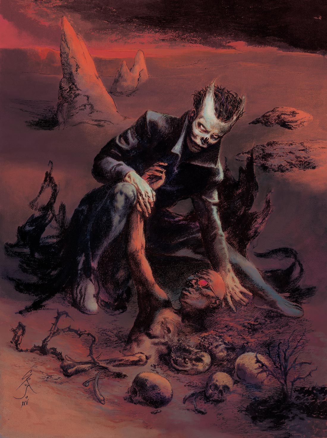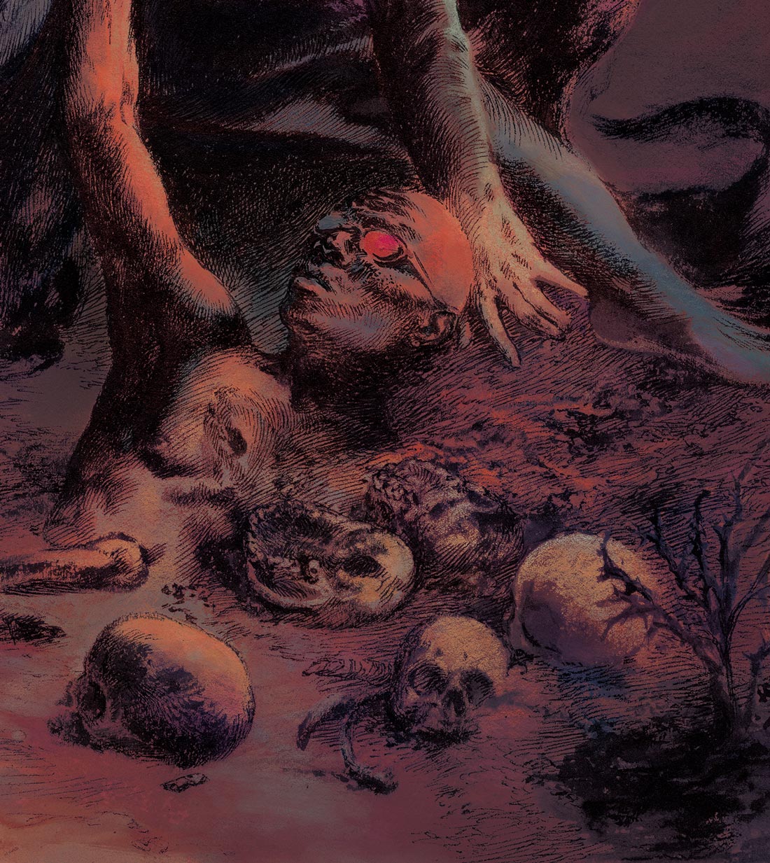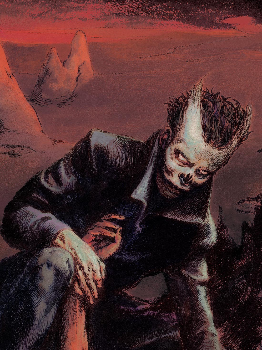 Ink & scratch over plastic | 35 x 27,5 cm | 2021 Colored version on PS. Cover for the book "Tres Piezas Góticas". Valdemar, 2021 -